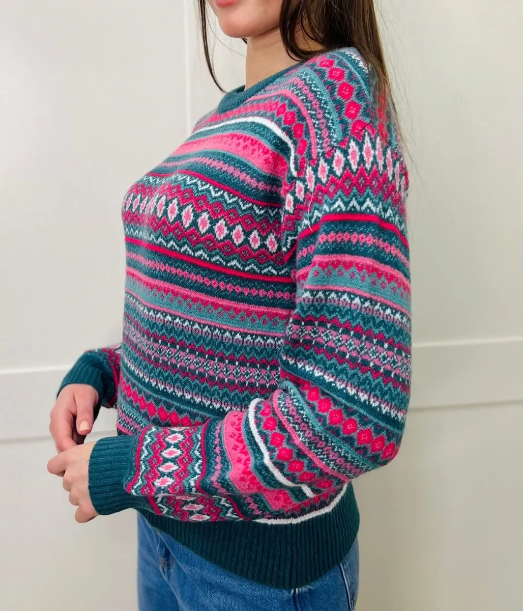 Embrace a classic style this season in this cosy fairisle jumper. Made from a comfortable knitted fabric, it features a fairisle design, crew neckline and long sleeves. Team it with skinny jeans and ankle boots for an effortless outfit solution